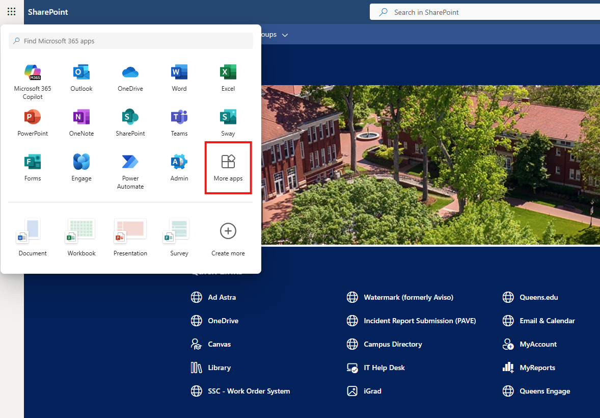 - Once you are logged in, you should see a button in the top left that looks like a grid. Click that, then click More Apps